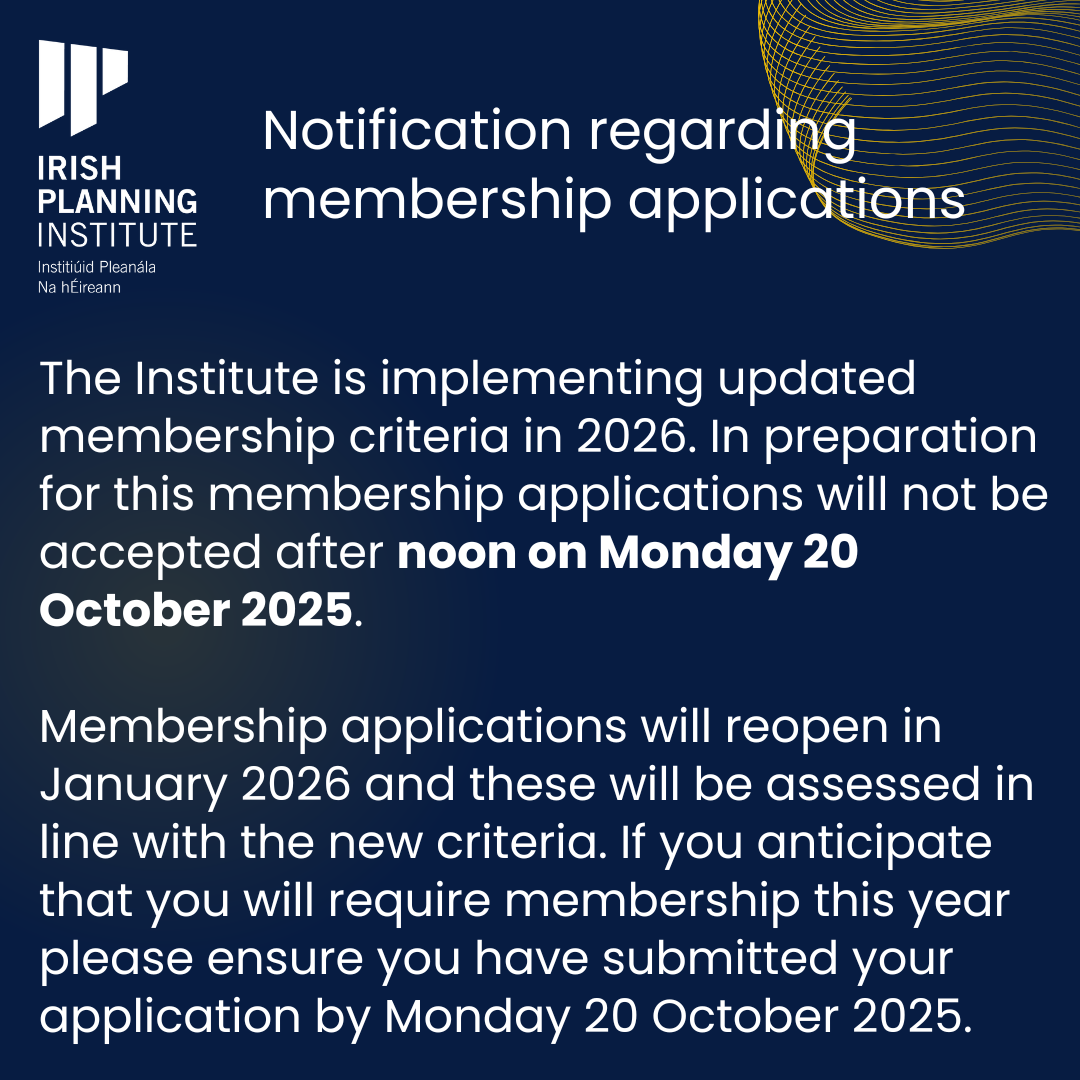 Home / IPI Membership Overview Representing over 1,000 planners across the public and private sector, members of the Irish Planning Institute work across Local Authorities, Academia, An Coimisiún Pleanála, Central Government, Regional Assemblies, in Private Practice as Consultants for large Developers and for semi state organisations. Membership provides an opportunity to learn, share and collaborate with other planning professionals and is recognition of your professional qualifications and experience in the employment market. For more information on how to become a member of the IPI, plus details of benefits and subscription rates, please click on the links below.